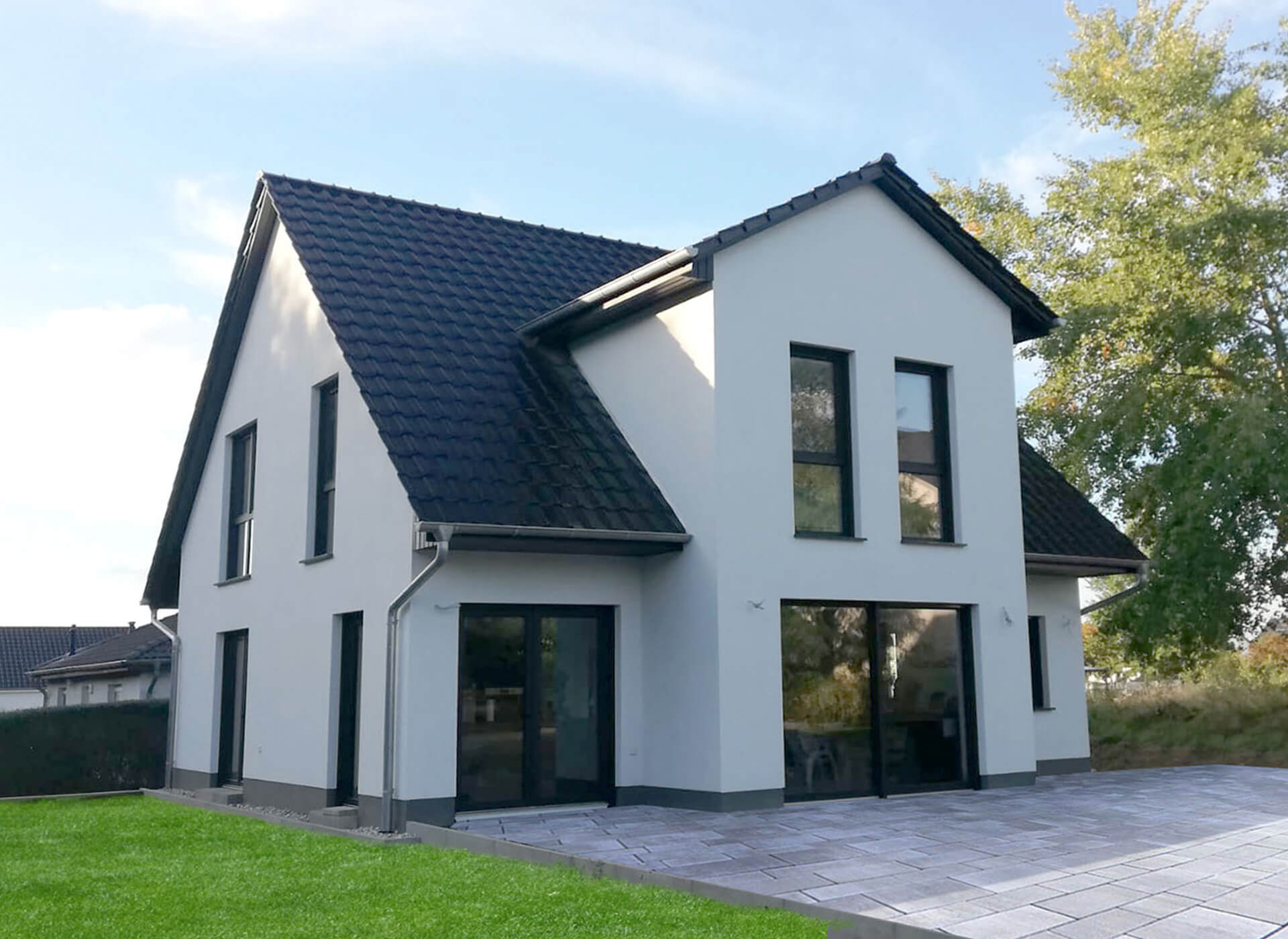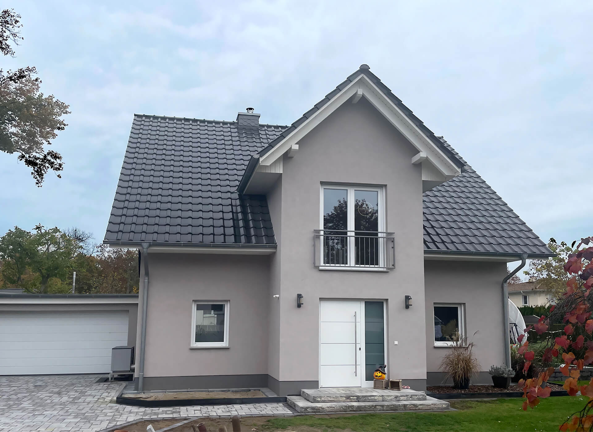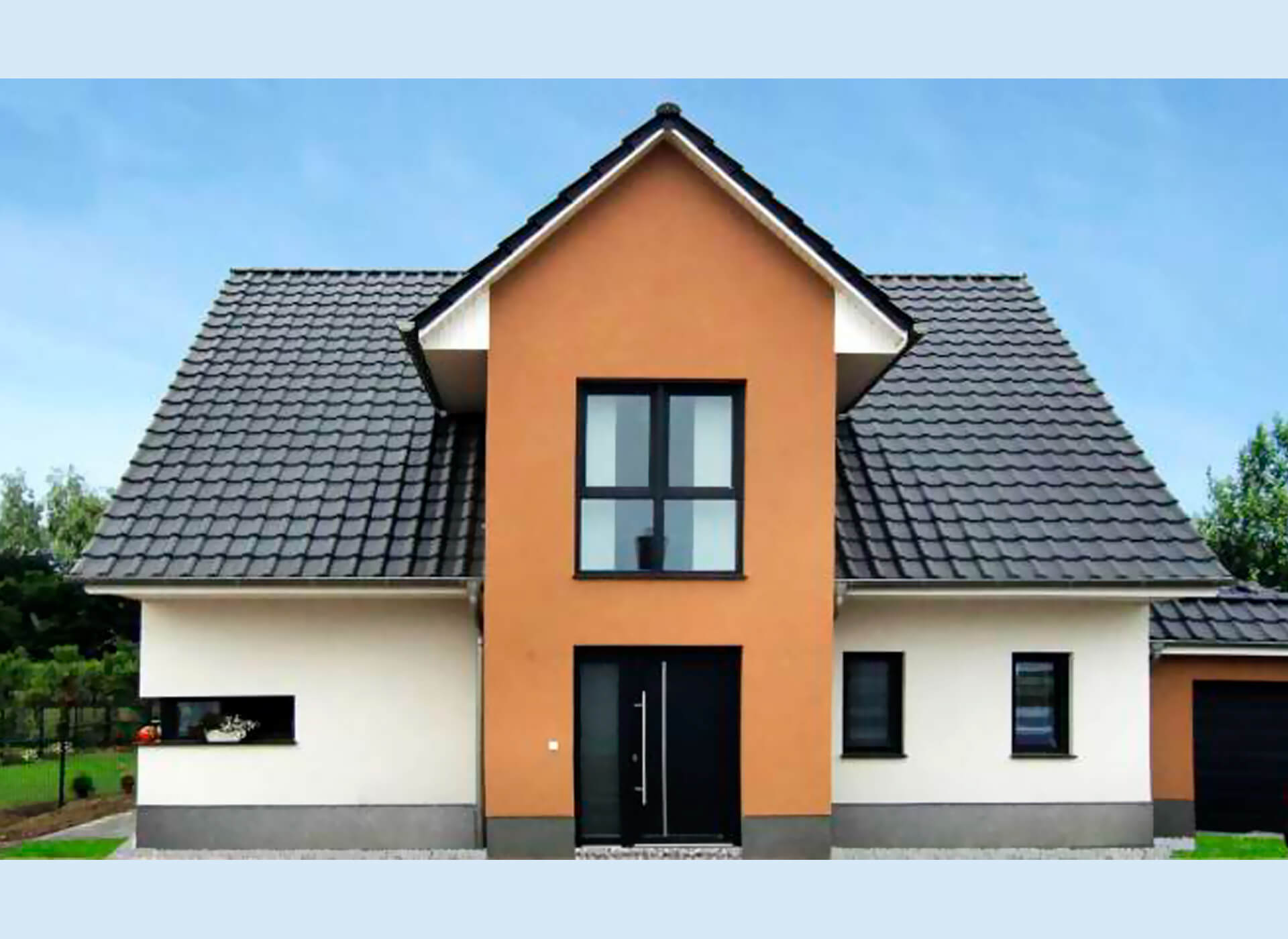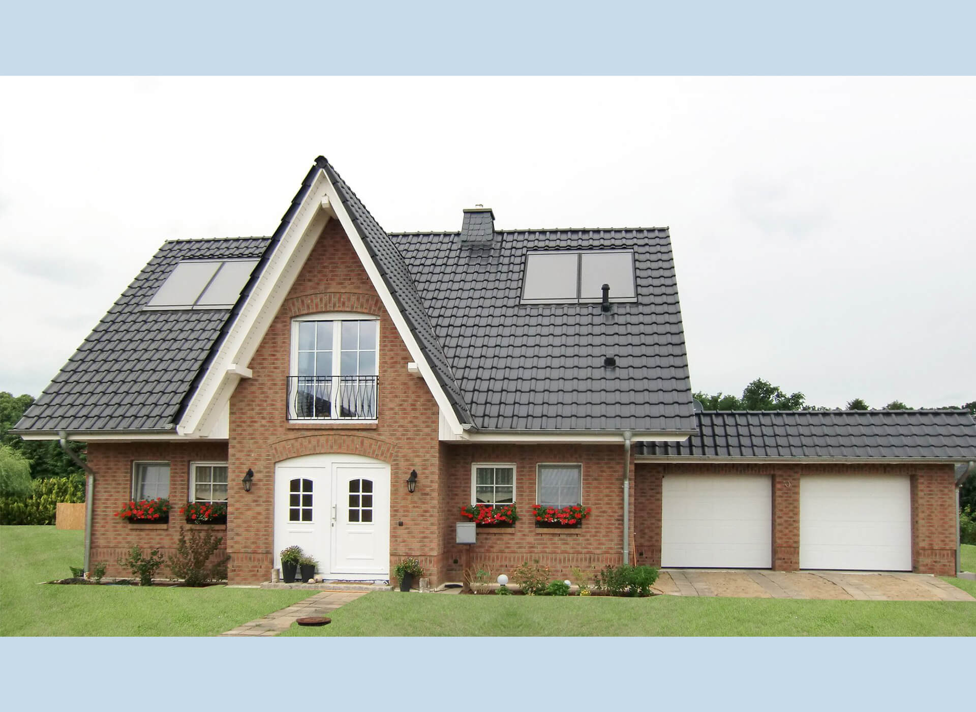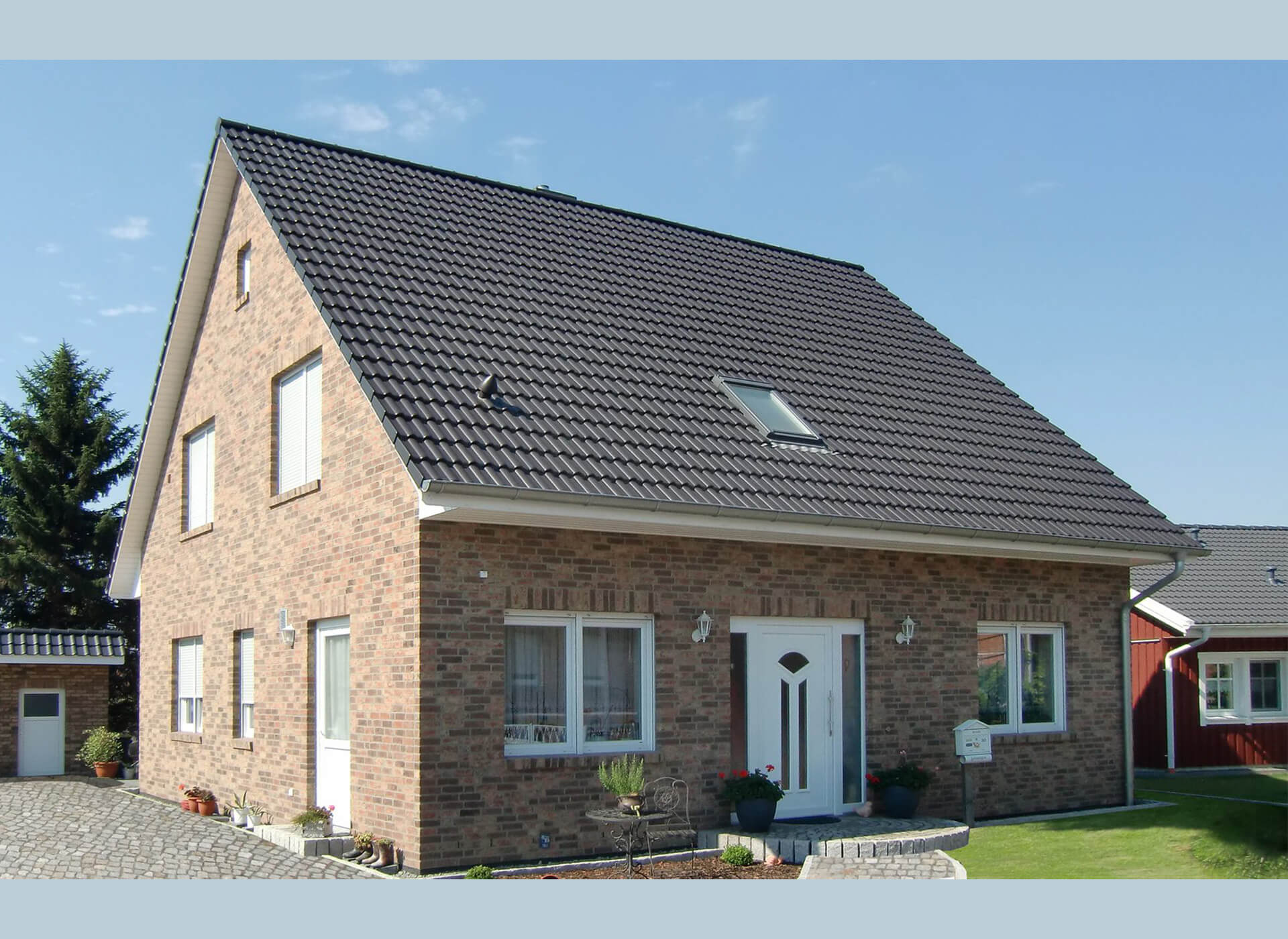 oder zum Beispiel mit Friesengiebel, Klinker und Doppelgarage