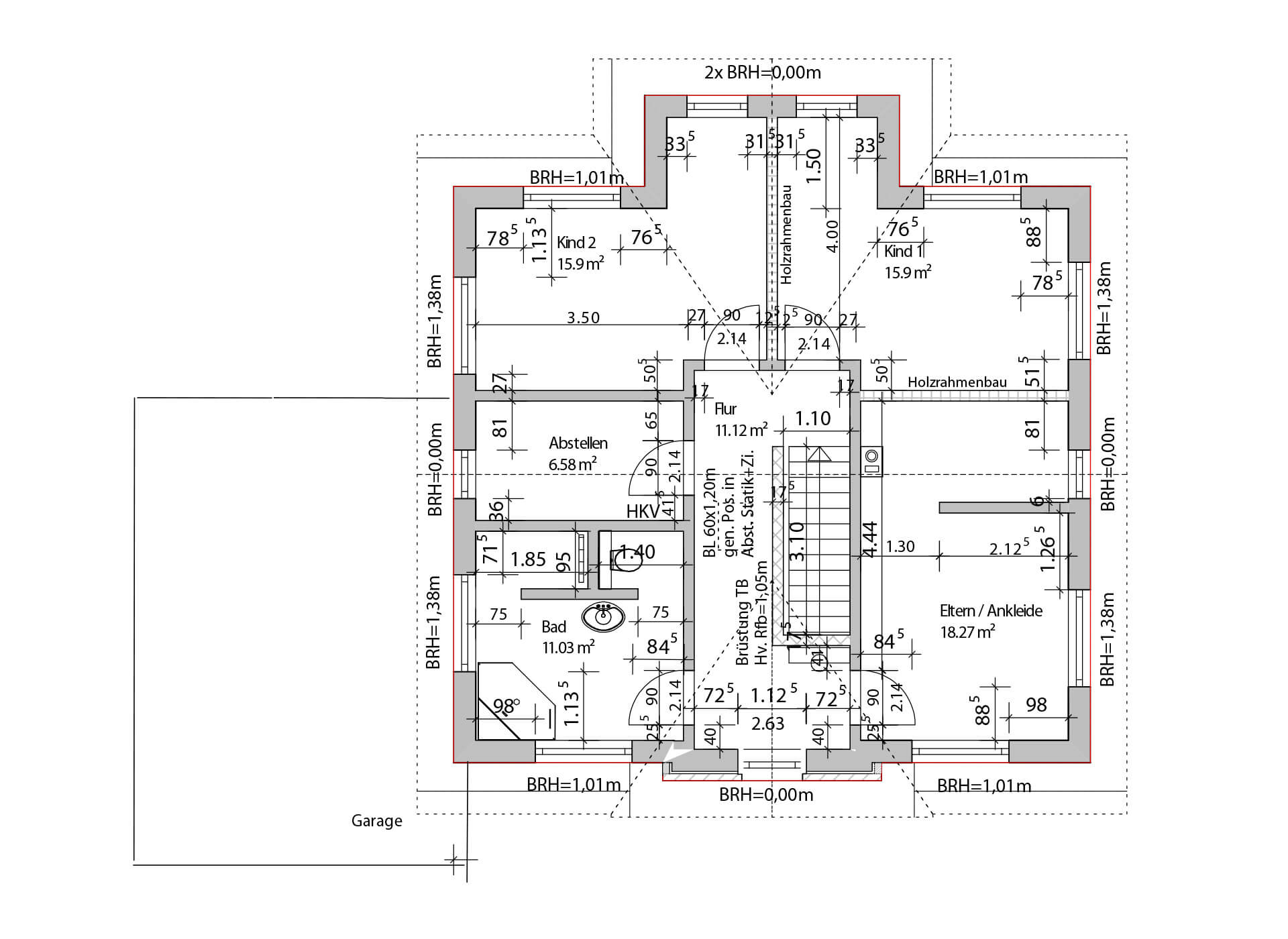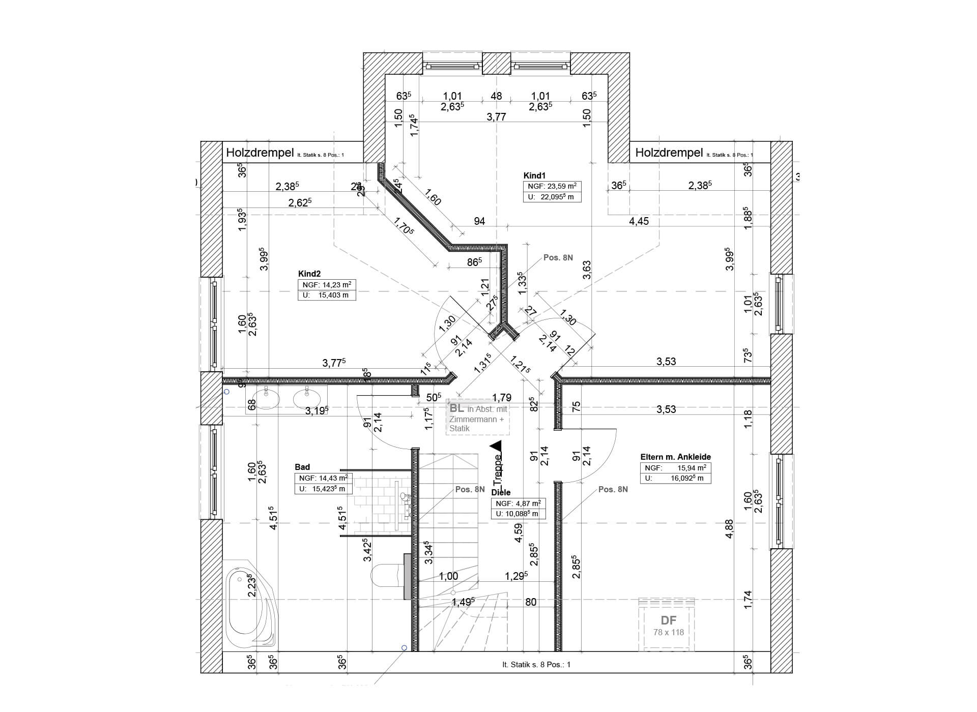 Einfamilienhaus mit Erker und Zwerchgiebel und Pfettendachstuhl