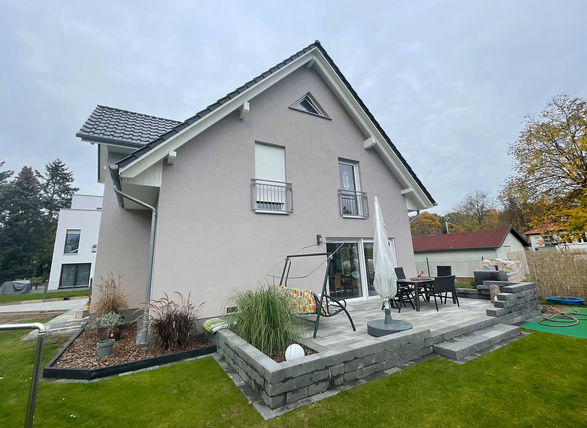 Einfamilienhaus mit Gaube, Vordach und Pfettendachstuhl