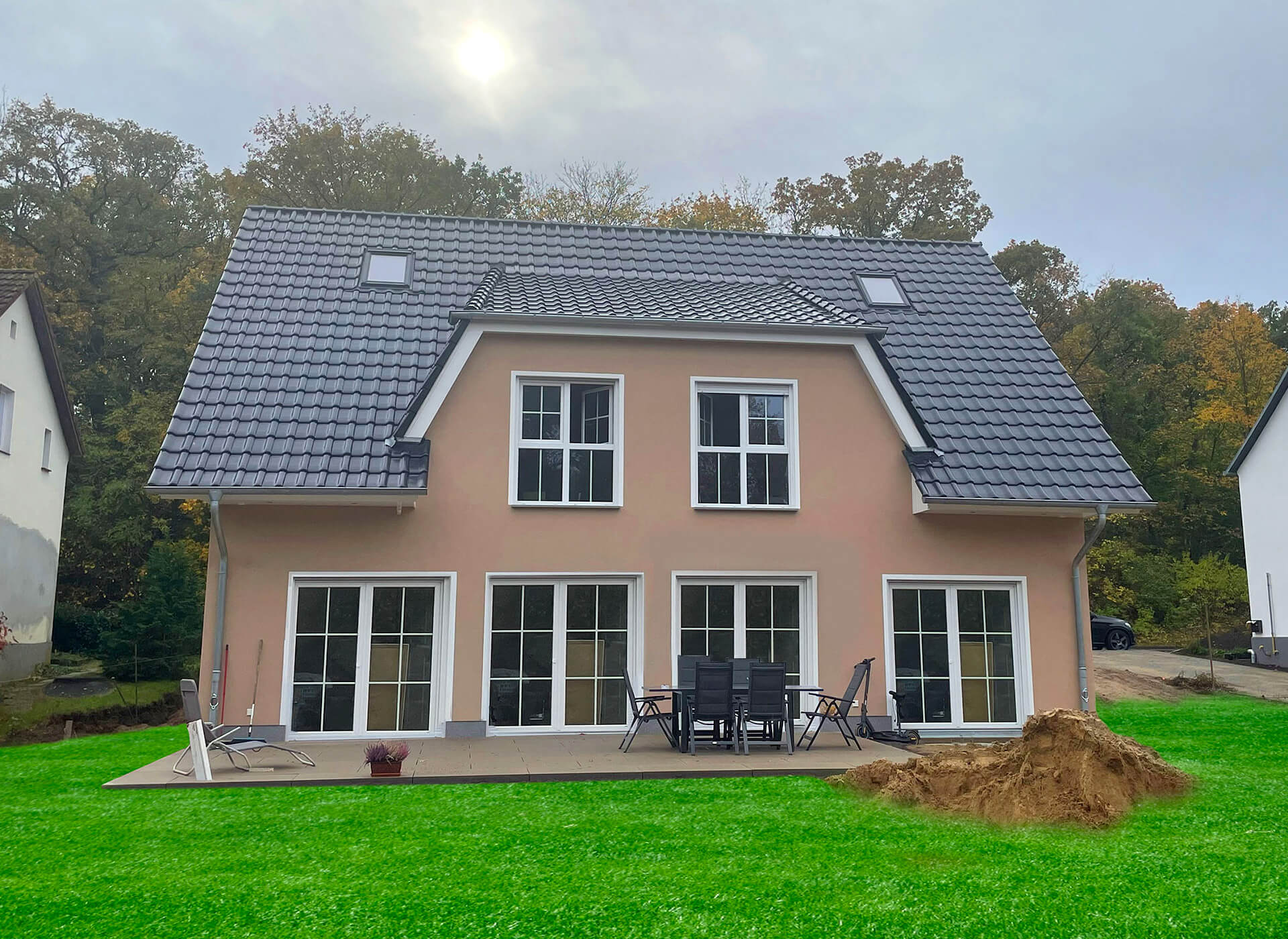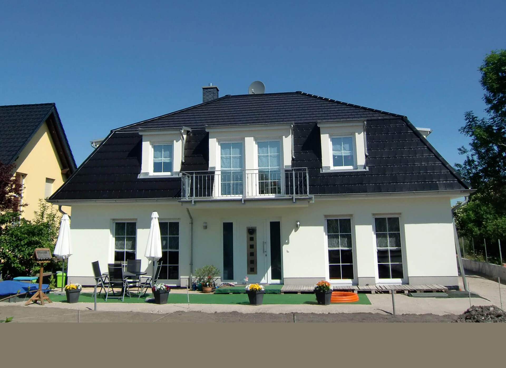 oder zum Beispiel mit Mansardendach und Gauben