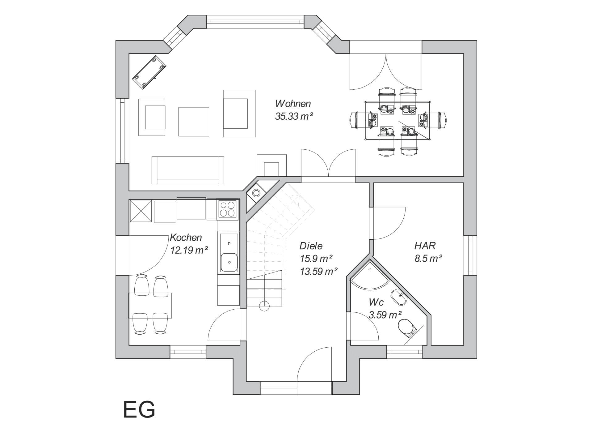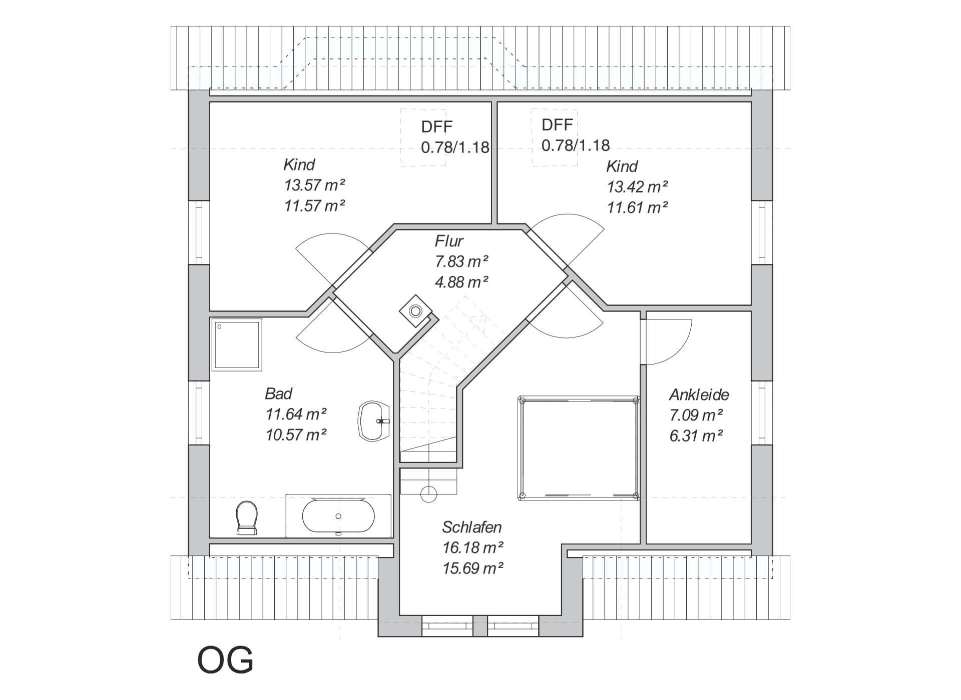 Abgebildet sind mögliche Grundrissvarianten, sie stellen Gestaltungsvorschläge dar. Ihr Haus wird ganz individuell für Sie geplant. Die Abbildungen zeigen z.T. auch Sonderausstattungen. Kontaktieren Sie uns gern für Ihre detaillierten Fragen.
