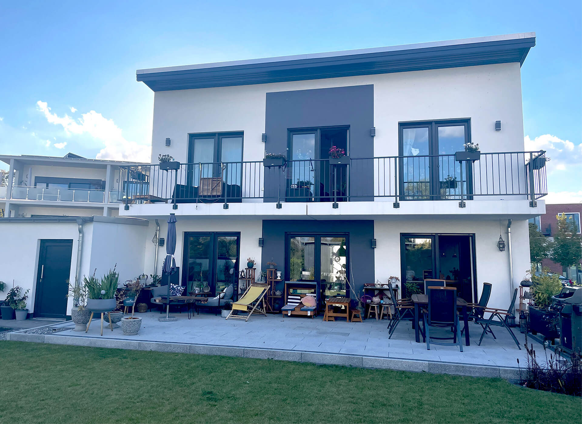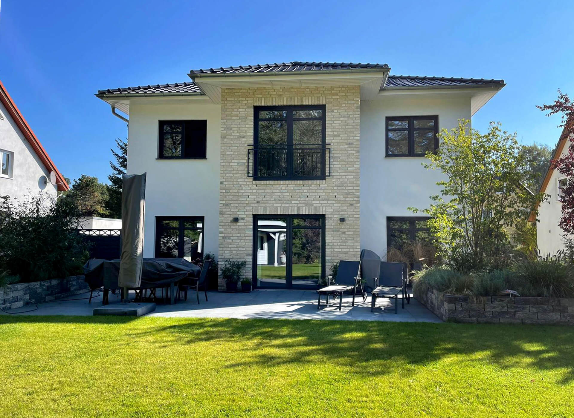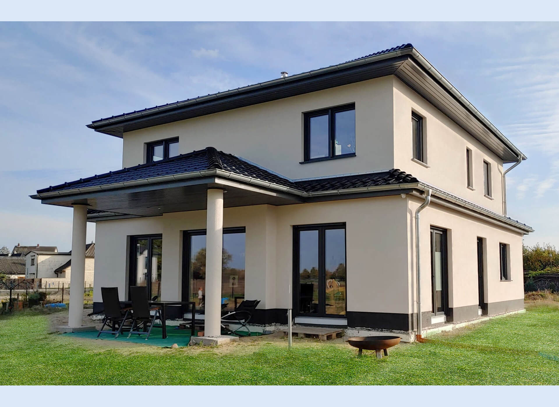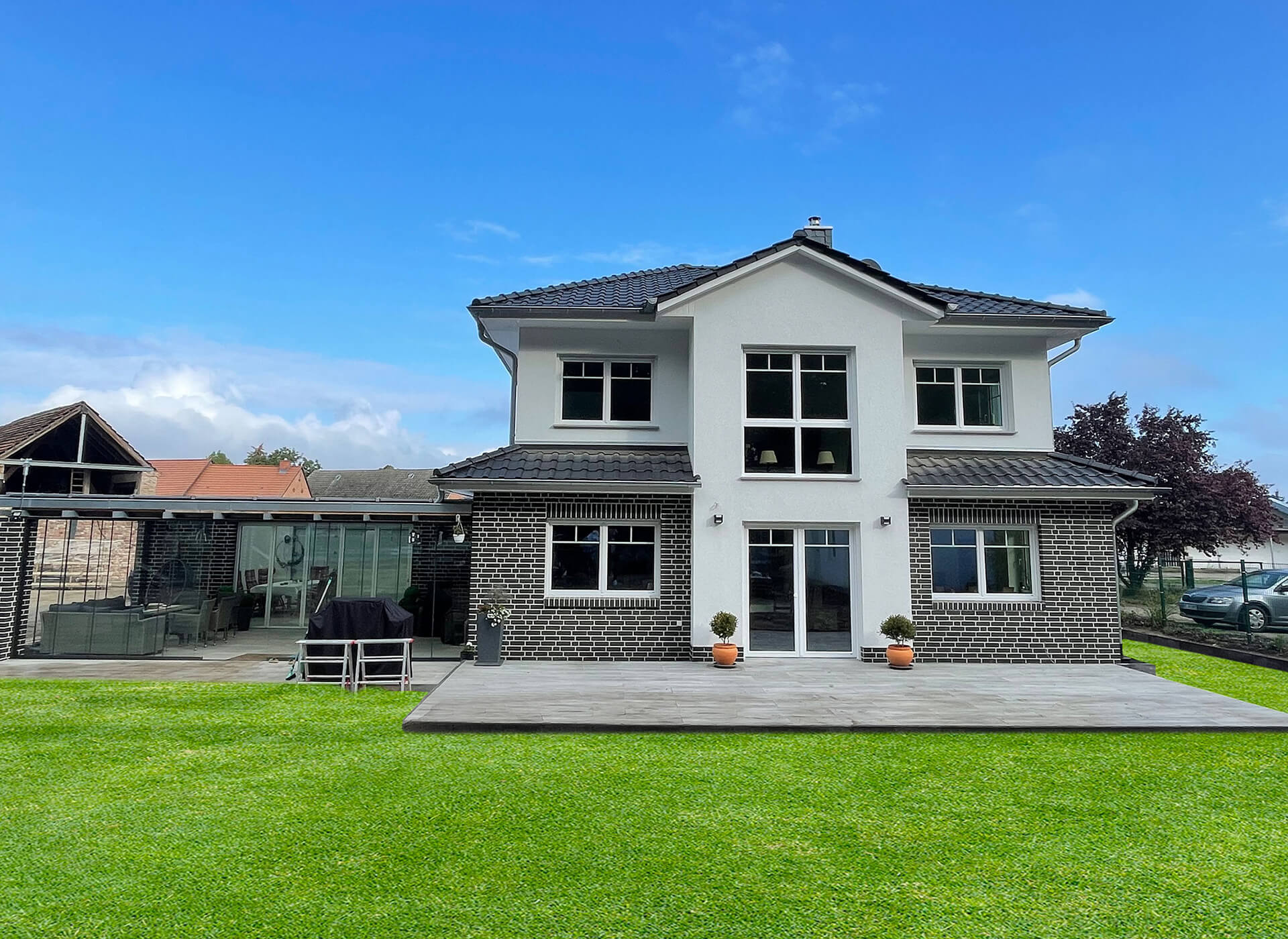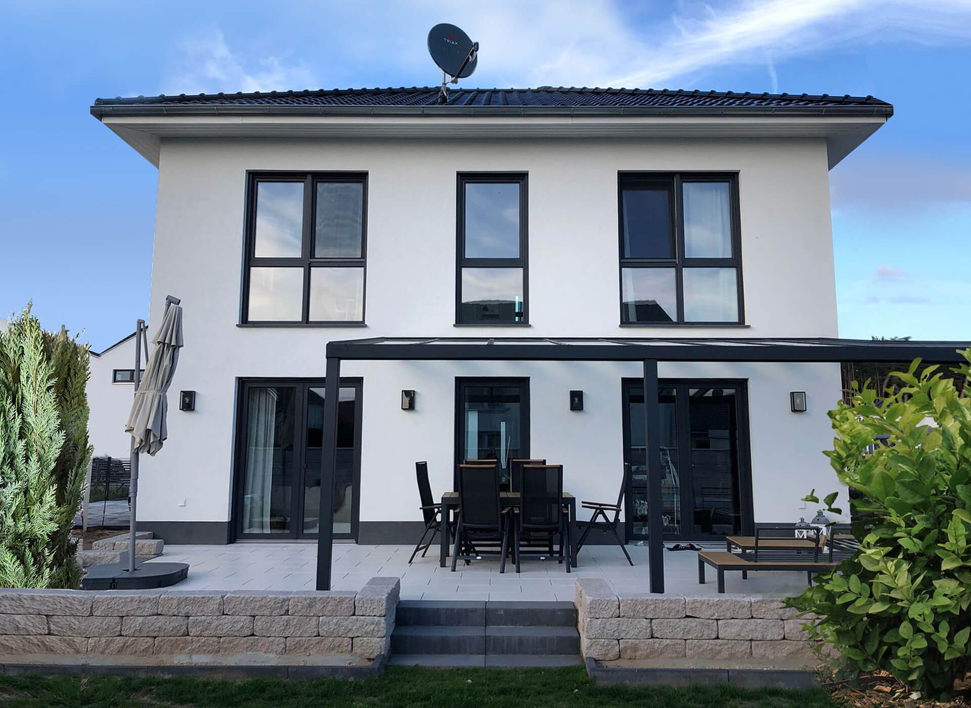 und rückseitiger Walmdach-Terrassen-Überdachung