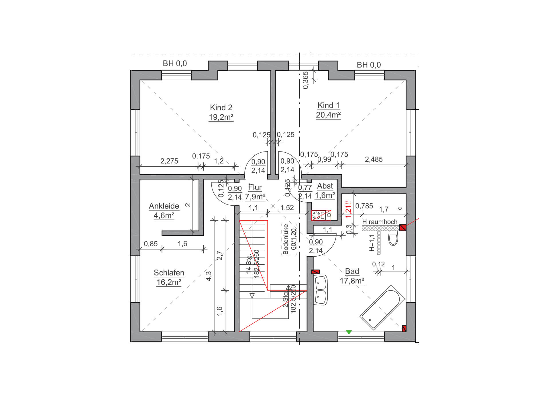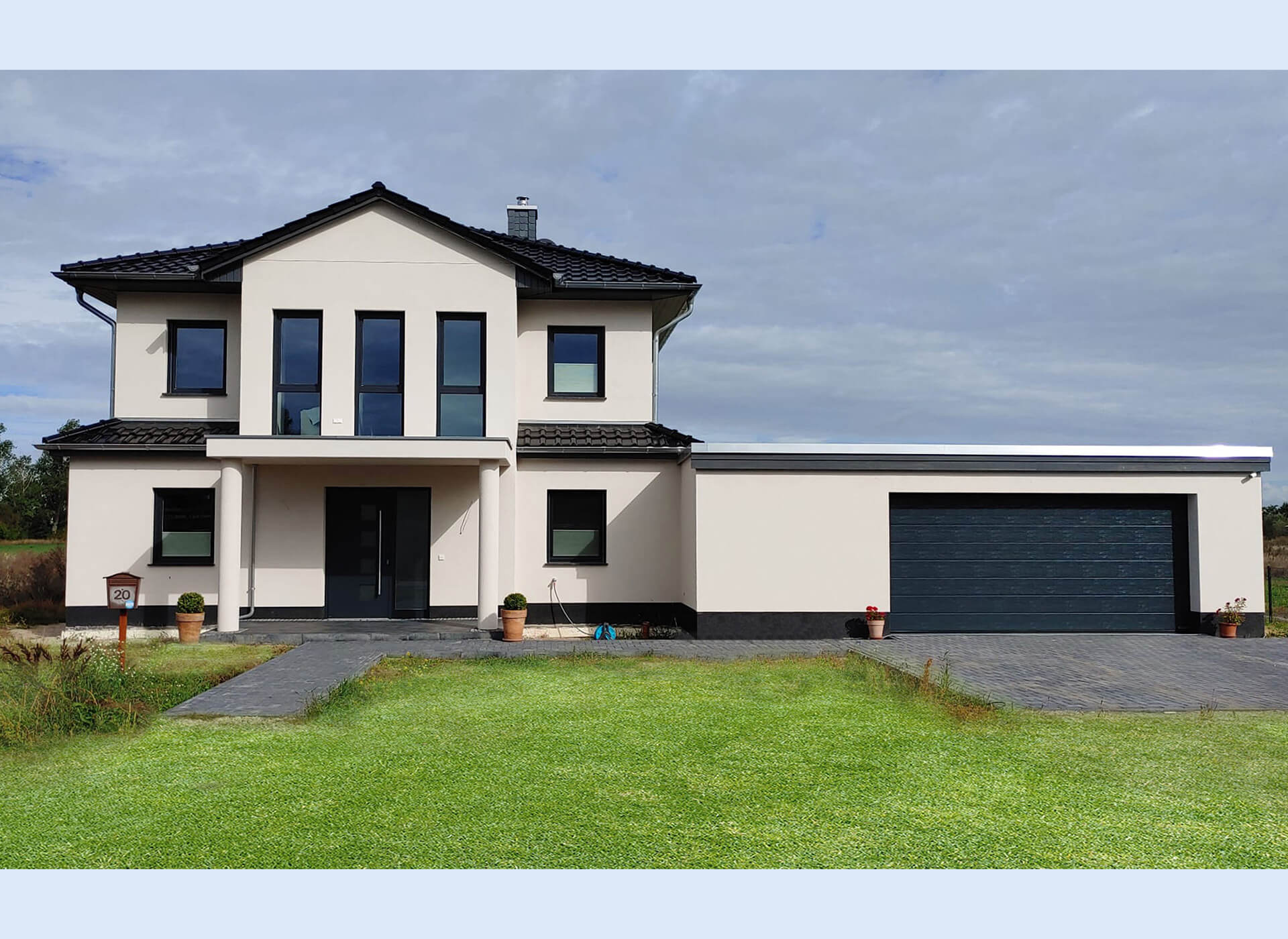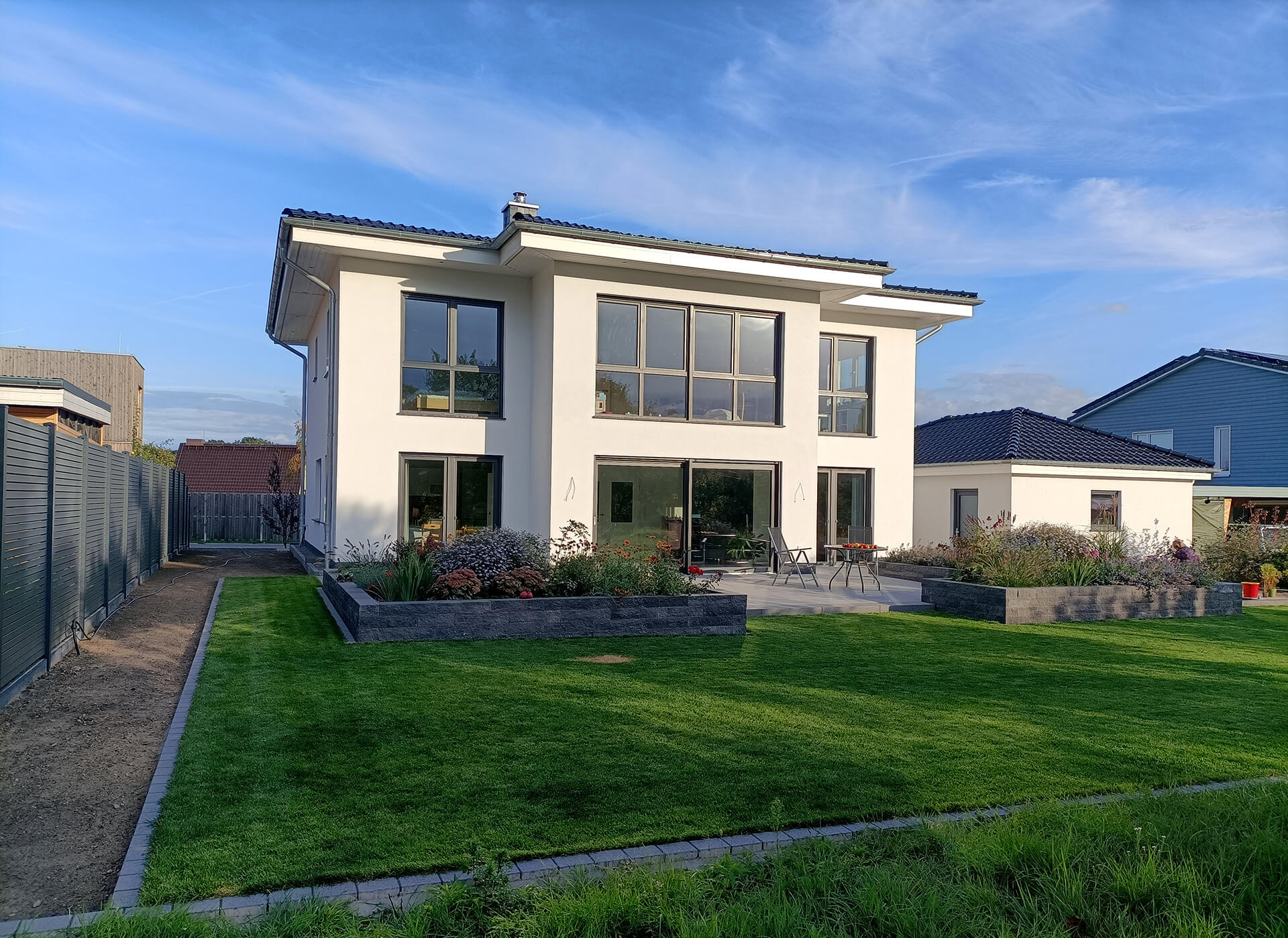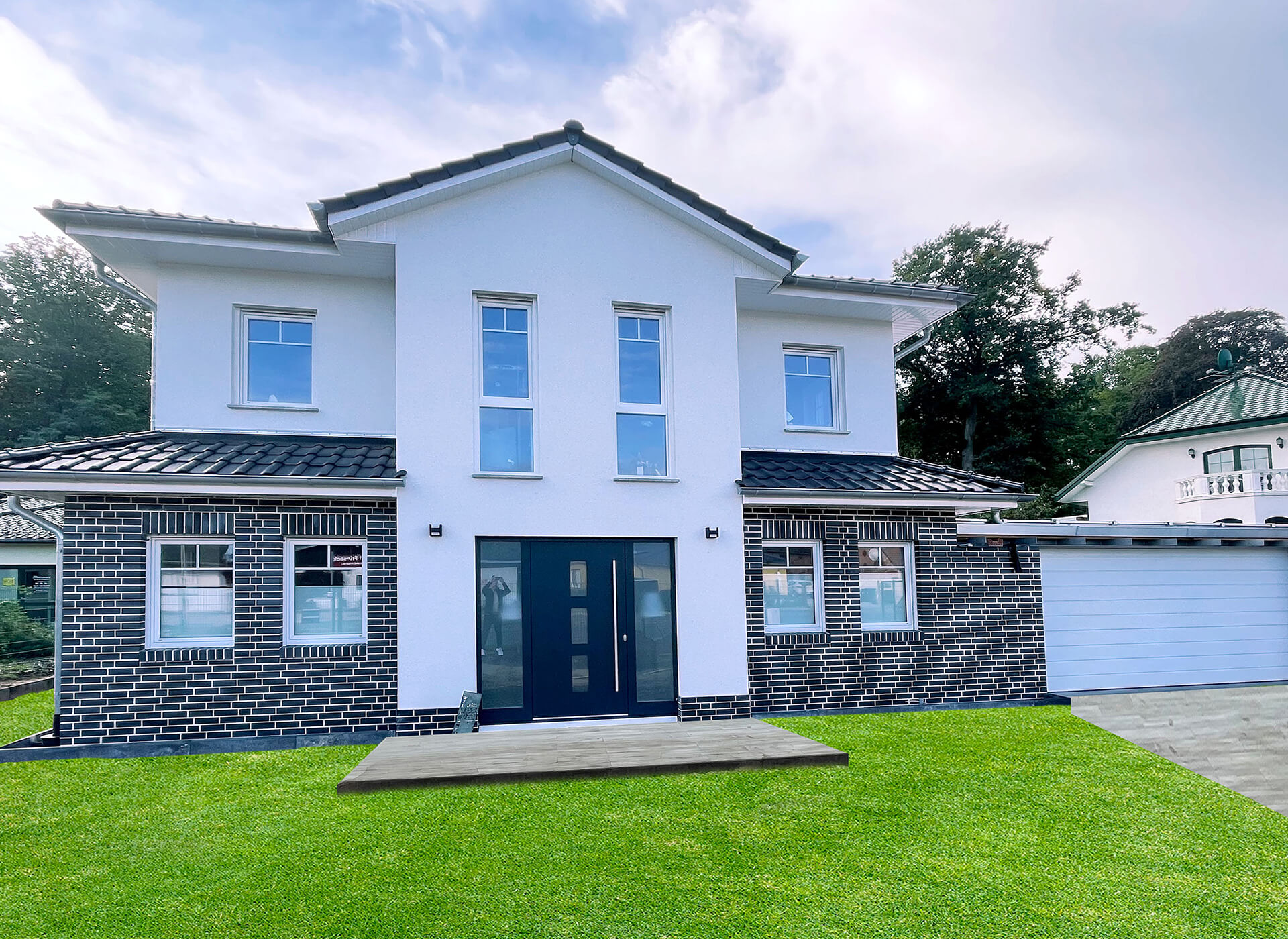 Abgebildet sind mögliche Grundrissvarianten, sie stellen Gestaltungsvorschläge dar. Ihr Haus wird ganz individuell für Sie geplant. Die Abbildungen zeigen z.T. auch Sonderausstattungen. Kontaktieren Sie uns gern für Ihre detaillierten Fragen.