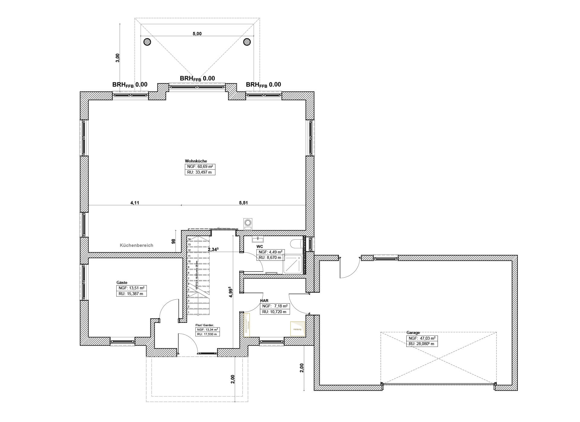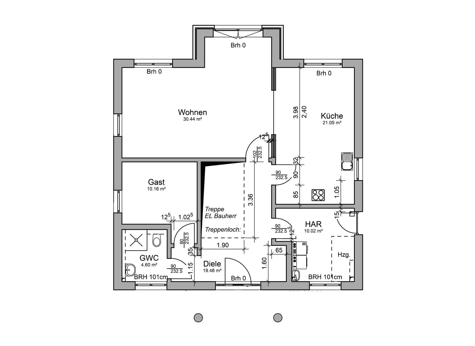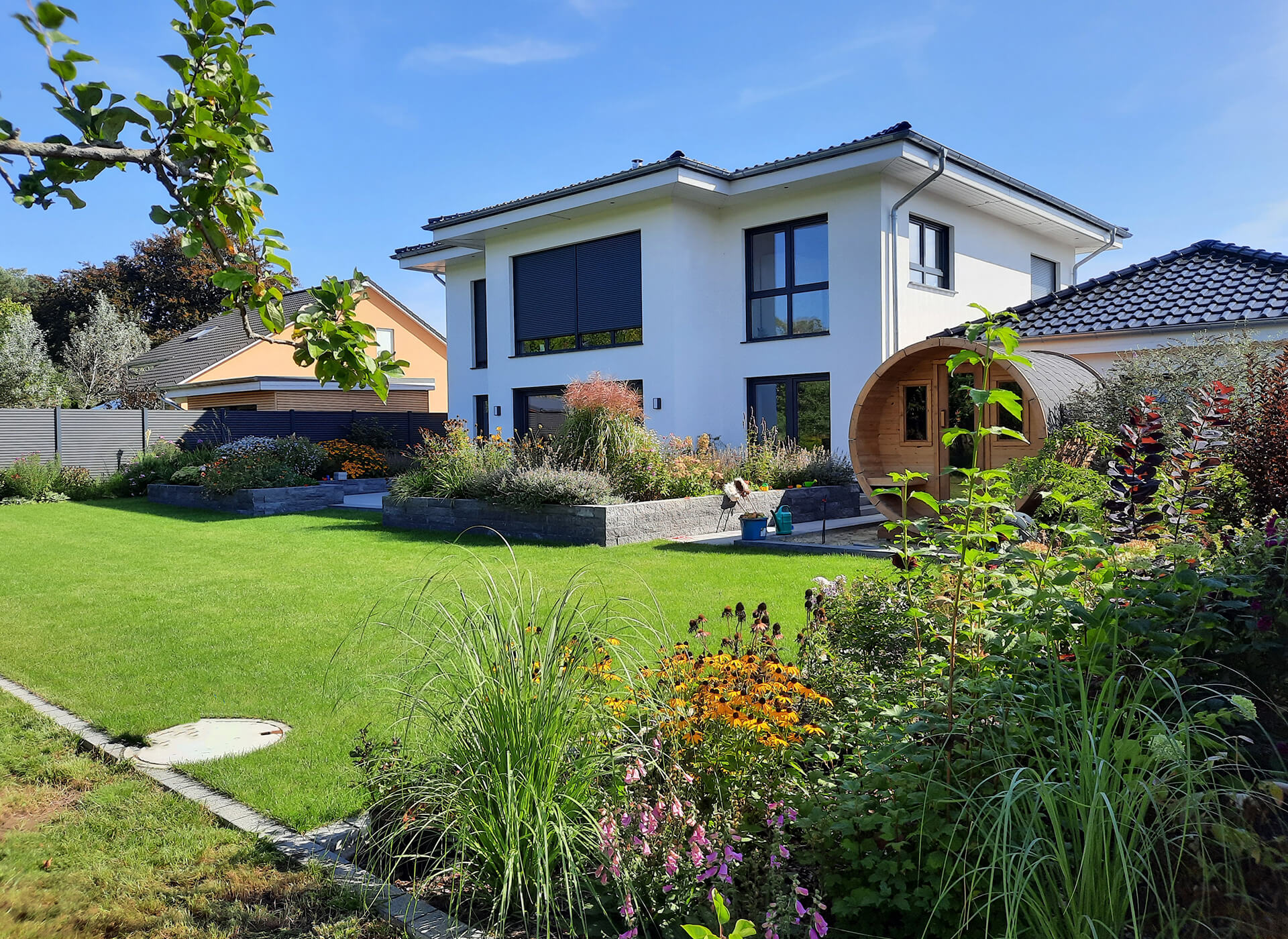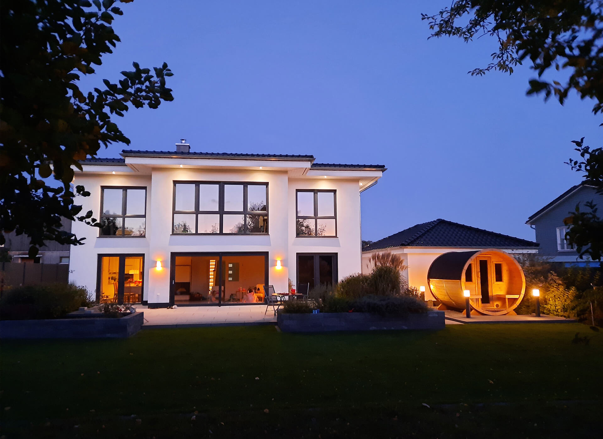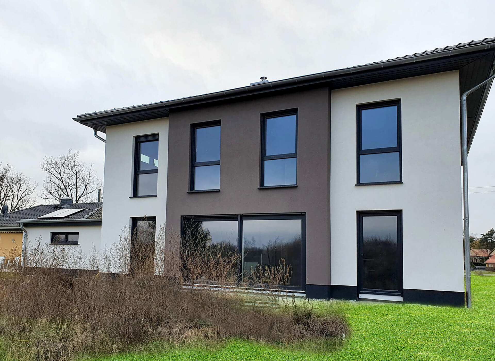 Abgebildet sind mögliche Grundrissvarianten, sie stellen Gestaltungsvorschläge dar. Ihr Haus wird ganz individuell für Sie geplant. Die Abbildungen zeigen z.T. auch Sonderausstattungen. Kontaktieren Sie uns gern für Ihre detaillierten Fragen.