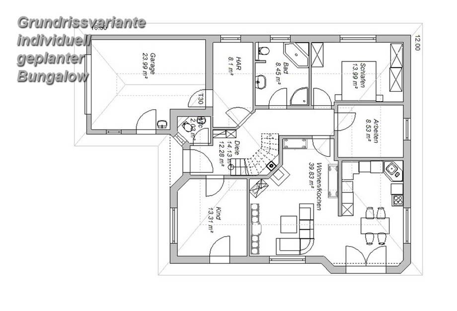 Bungalow mit individuellem Grundriss